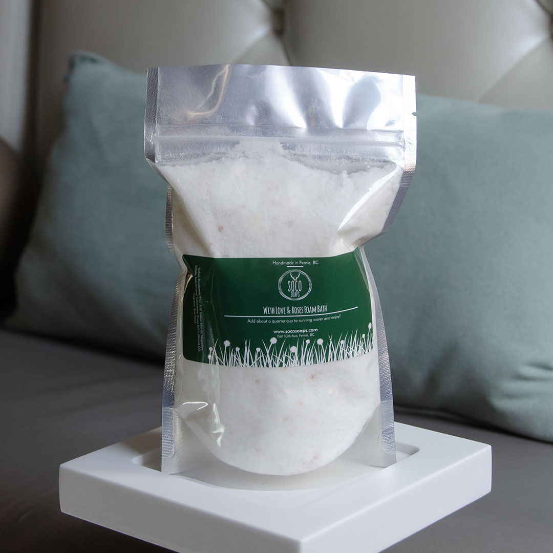 This Valentine’s Day, we’re pairing the gift of relaxation with a local favourite. When you purchase a $100+ gift card, you’ll receive a complimentary “With Love and Roses” bath soak by SOCO Soaps — a locally made blend designed to turn any bath into a quiet moment of calm.